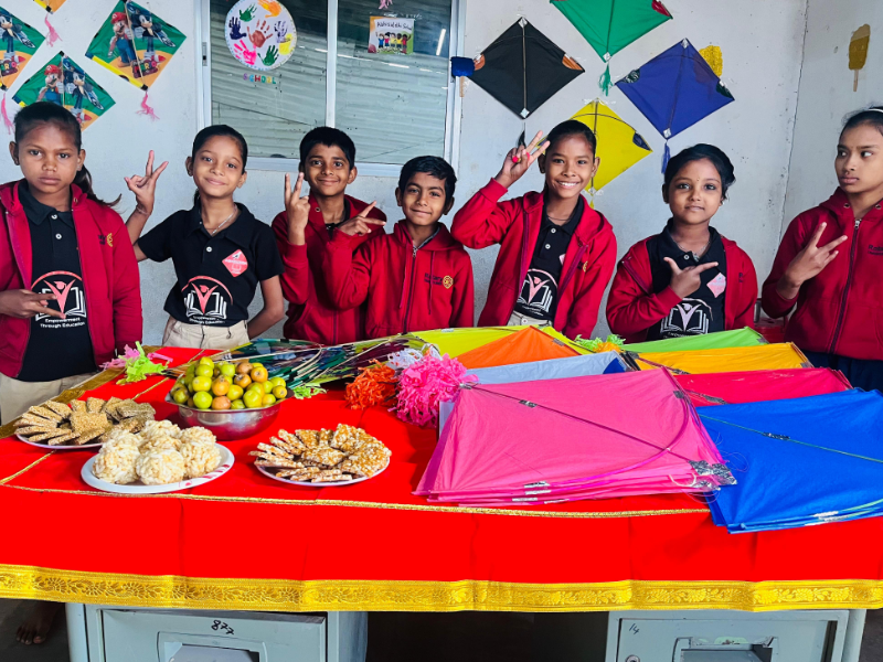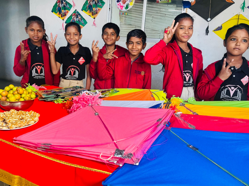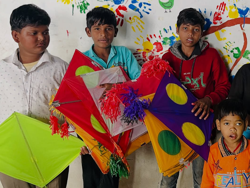 A joyful festival filled with kite flying, laughter, and festive fun. Children celebrated together, enjoying colorful kites and sharing happy moments.