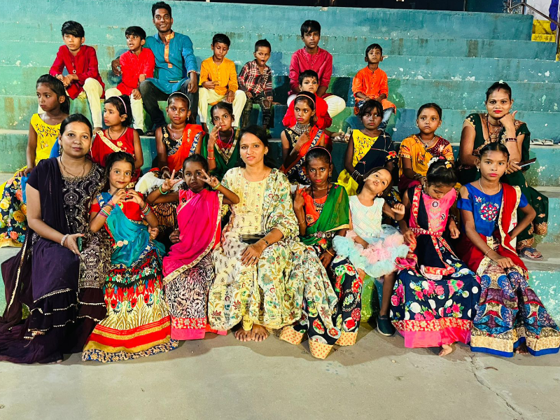 On the occasion of Navratri, kids were gifted Chaniya Choli/Kurta Pajamas, and they did Mataji Aarti and played Garba, celebrating the festival with joy and devotion.