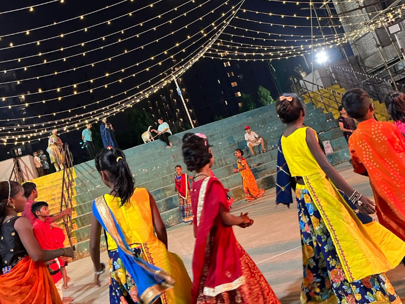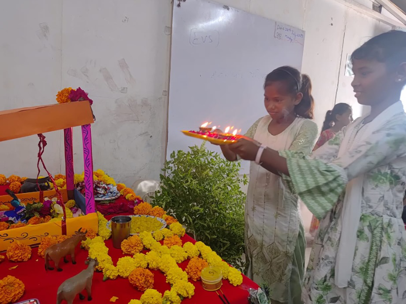 On the occasion of Navratri, kids were gifted Chaniya Choli/Kurta Pajamas, and they did Mataji Aarti and played Garba, celebrating the festival with joy and devotion.