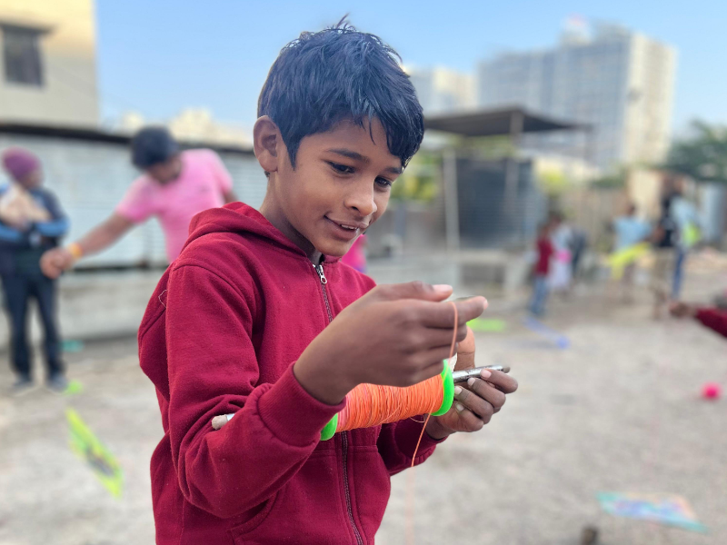 A joyful festival filled with kite flying, laughter, and festive fun. Children celebrated together, enjoying colorful kites and sharing happy moments.